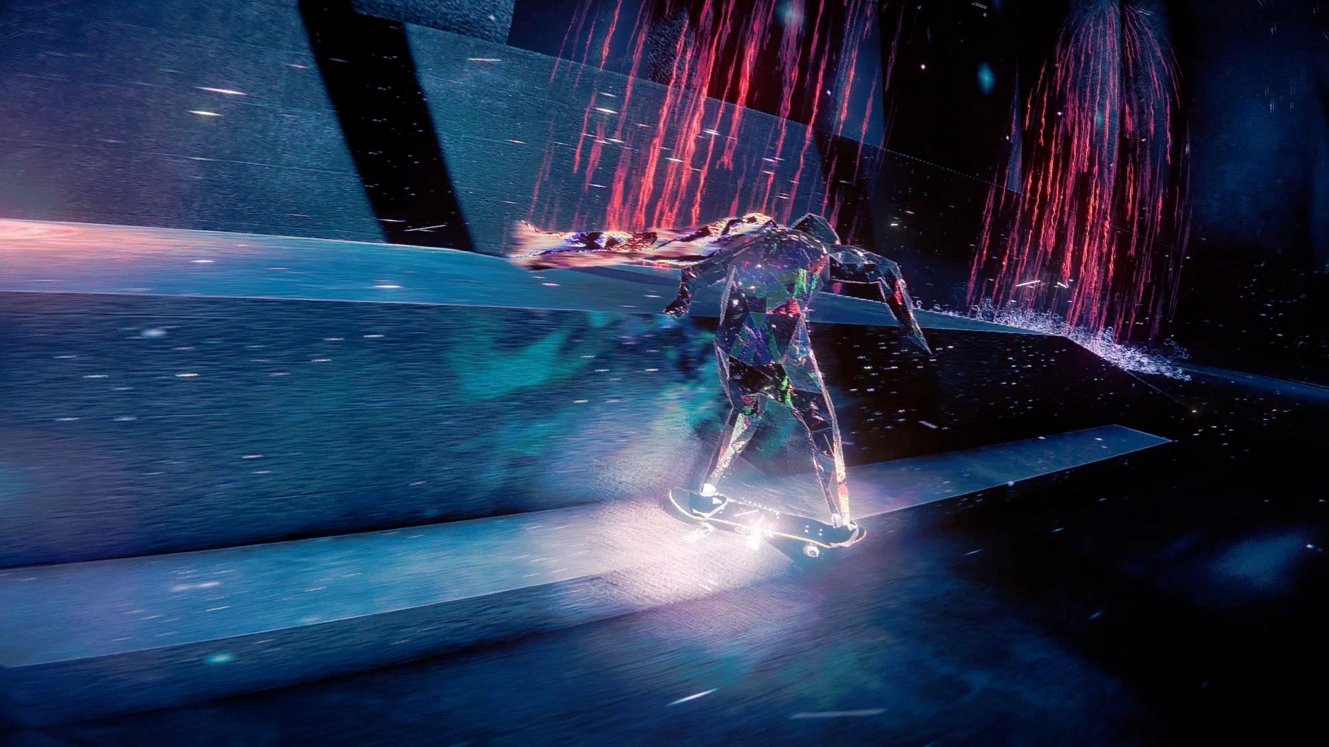 Right from the jump, Skate Story distinguishes itself not with mechanics, but with mood. This is one of the most visually striking games released in years—a neon-soaked fever dream where every lamppost, shadow, and passing breeze looks dipped in liquid melancholy. The entire world seems suspended between reality and hologram, like a mixtape of cyberpunk street photography, offbeat music videos, and PS2-era surrealism. You don’t just skate through levels—you drift through spaces that feel like metaphors. If traditional skate games evoke rebellious energy and backyard punk shows, Skate Story is more like skating through your intrusive thoughts at 3 AM.